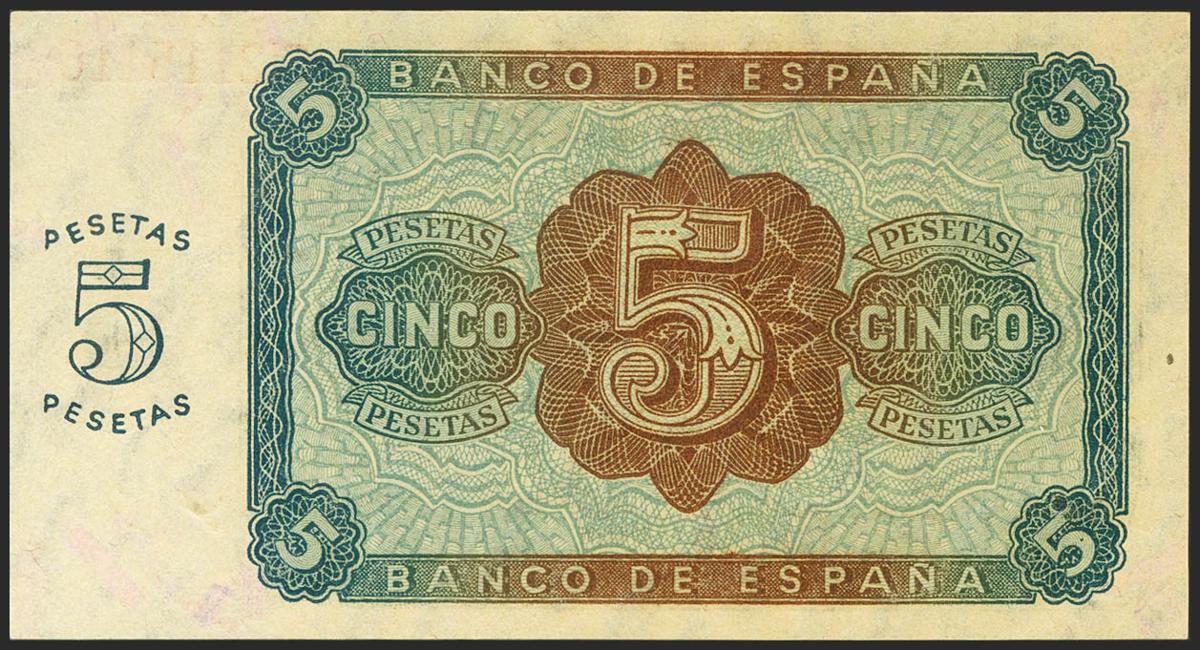 5 Pesetas. 10 de Agosto de 1938. Serie C. (Edifil 2021: 435a). Apresto original. SC.