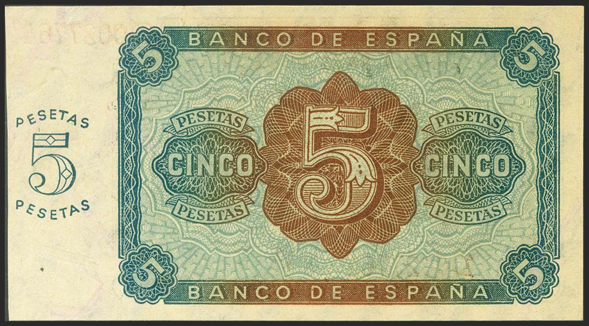 5 Pesetas. 10 de Agosto de 1938. Serie D. (Edifil 2021: 435a). Apresto original. SC.