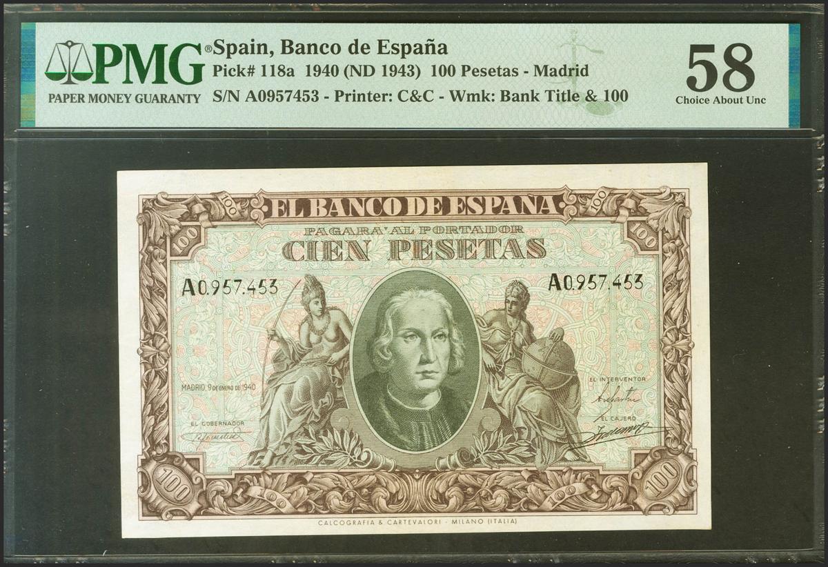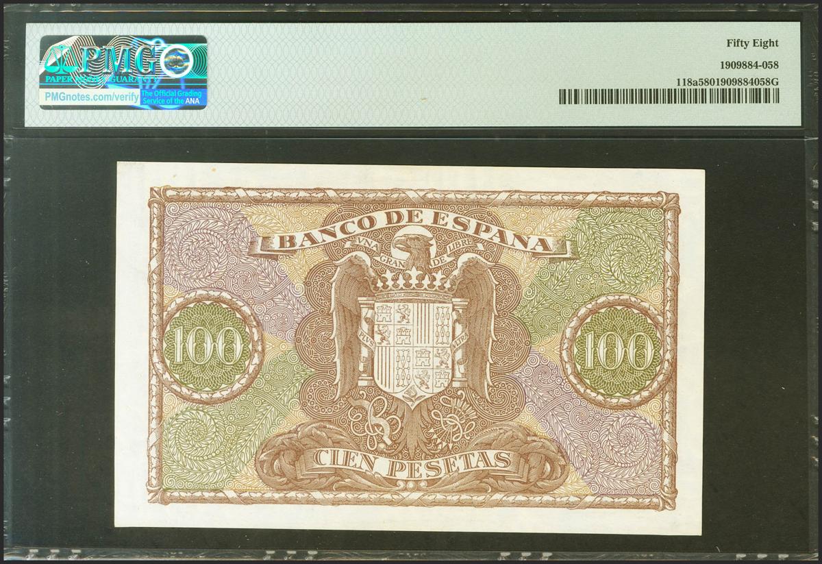 100 Pesetas. 9 de Enero de 1940. Serie A. (Edifil 2021: 438, Pick: 118a). EBC++. Encapsulado PMG58.