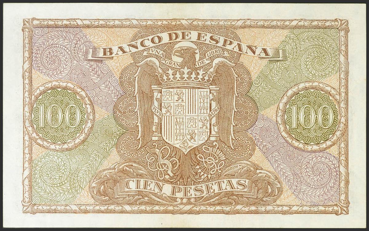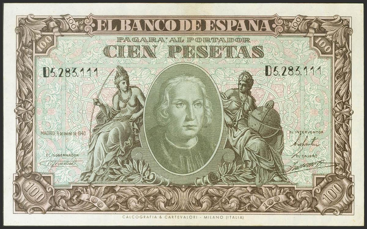 100 Pesetas. 9 de Enero de 1940. Serie D. (Edifil 2021: 438a, Pick: 118a). Conserva gran parte de su apresto original. EBC+.
