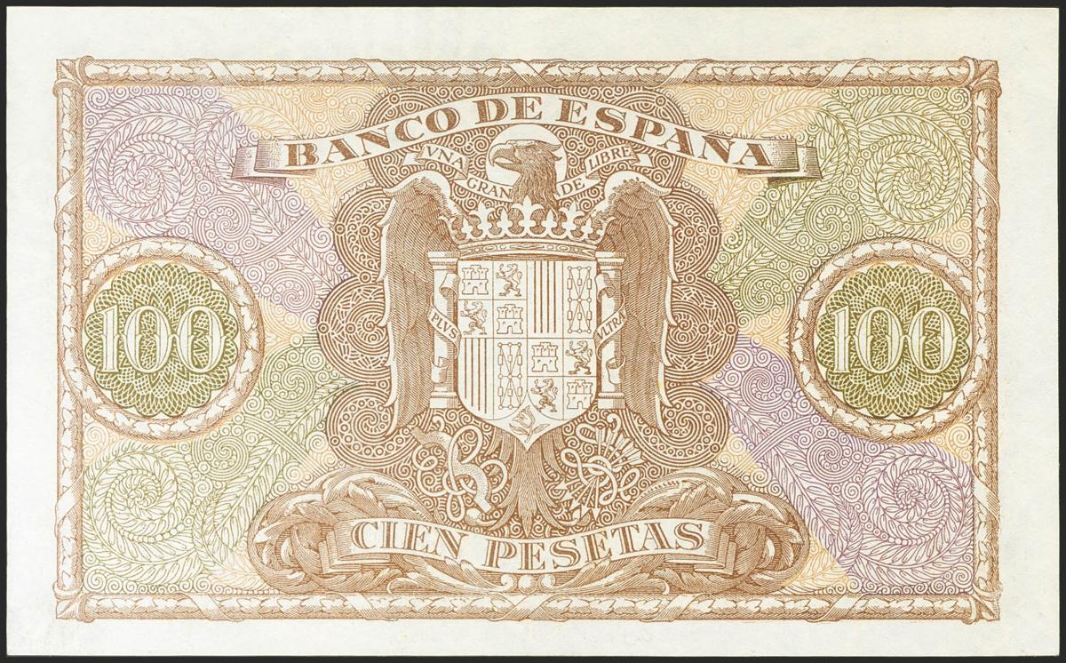 100 Pesetas. 9 de Enero de 1940. Serie D. (Edifil 2021: 438a). Presenta gran parte de su apresto original. EBC.