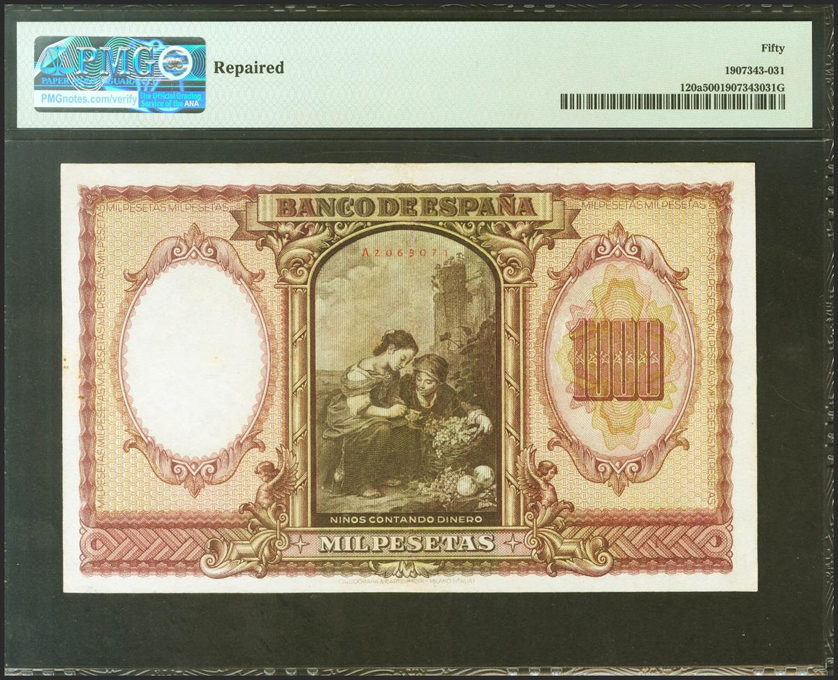 1000 Pesetas. 9 de Enero de 1940. Serie A. (Edifil 2021: 440, Pick: 120a). Reparado. EBC. Encapsulado PMG50.