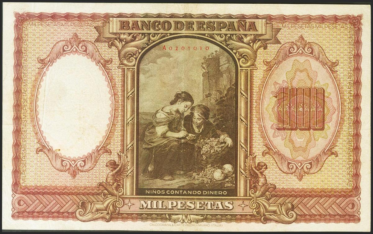 1000 Pesetas. 9 de Enero de 1940. Serie A. (Edifil 2021: 440). MBC.