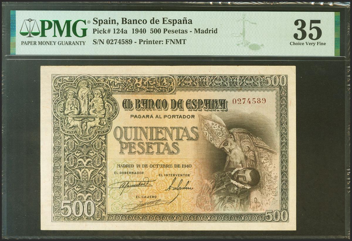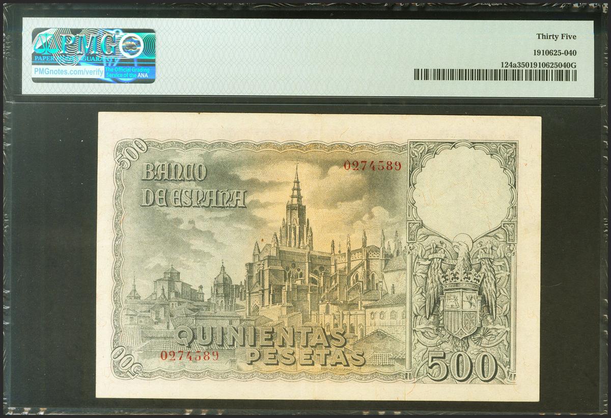 500 Pesetas. 21 de Octubre de 1940. Sin serie. (Edifil 2021: 444, Pick: 124a). Inusual. EBC-. Encapsulado PMG35.