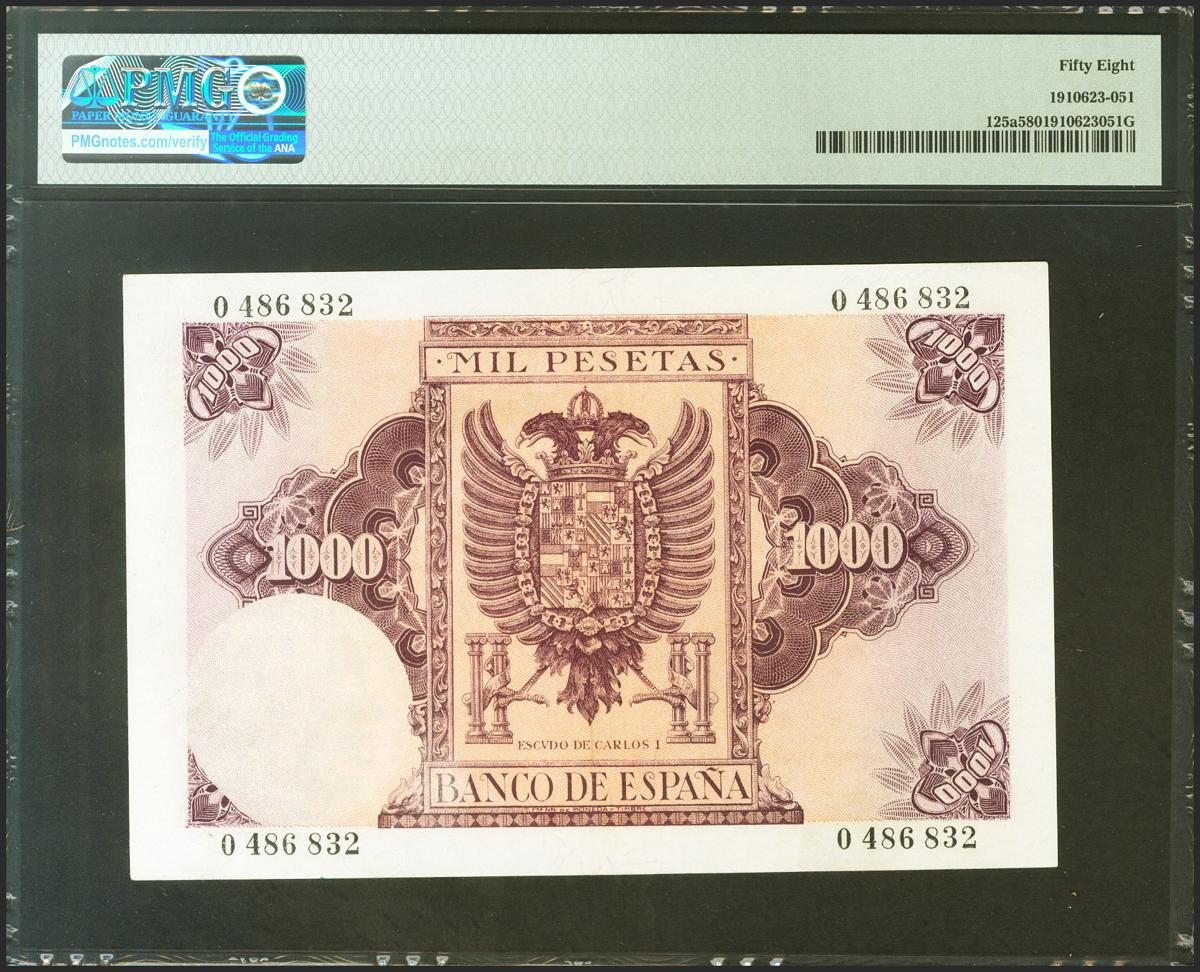 1000 Pesetas. 21 de Octubre de 1940. Sin serie. (Edifil 2021: 445, Pick: 125a). Inusual en esta calidad. EBC++. Encapsulado PMG58.