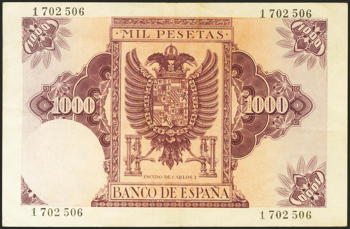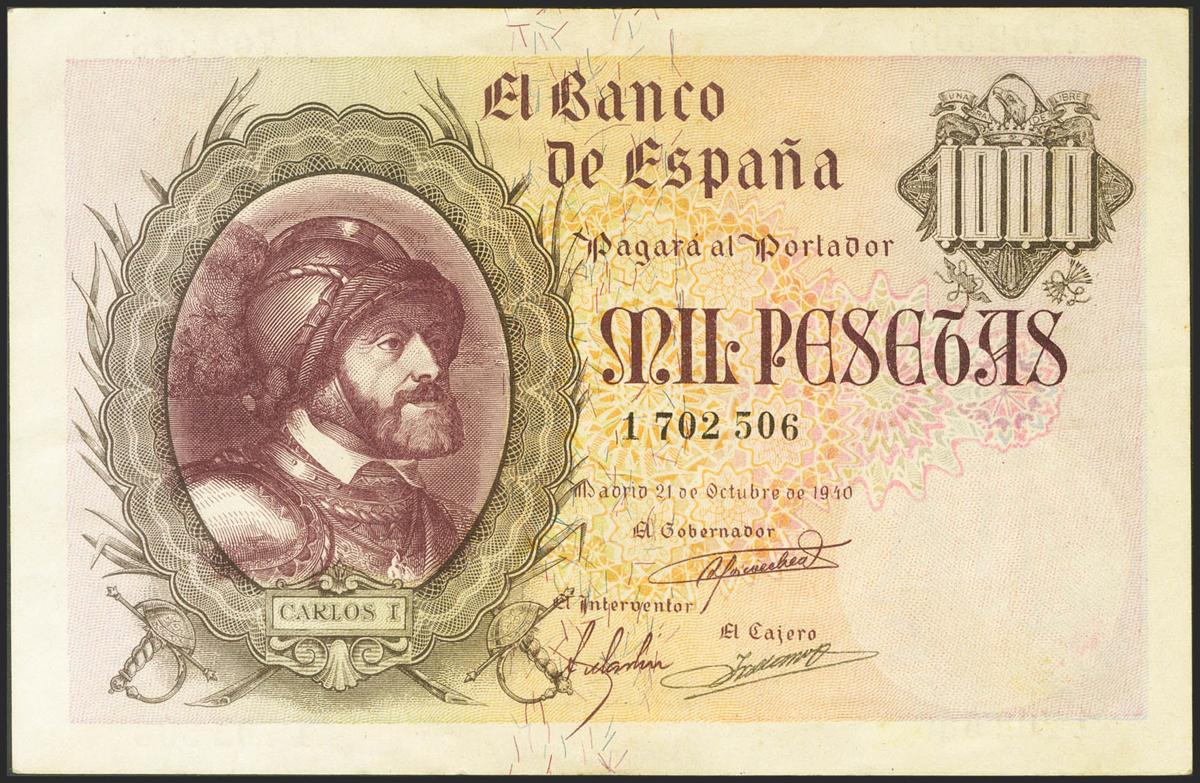1000 Pesetas. 21 de Octubre de 1940. Sin serie. (Edifil 2021: 445, Pick: 125a). Inusual, conserva parte de su apresto original. EBC-.