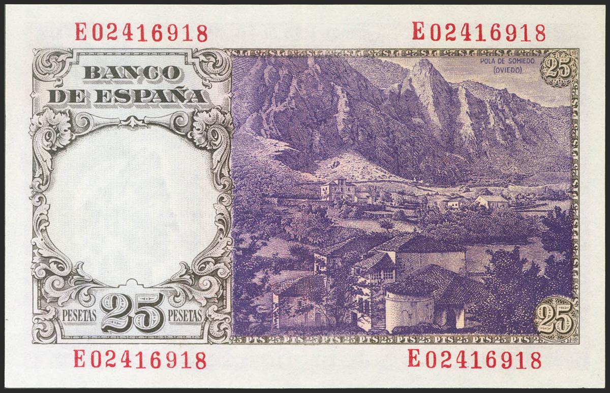 25 Pesetas. 19 de Febrero de 1946. Serie E. (Edifil 2021: 450a). Conserva gran parte de su apresto original. EBC+.