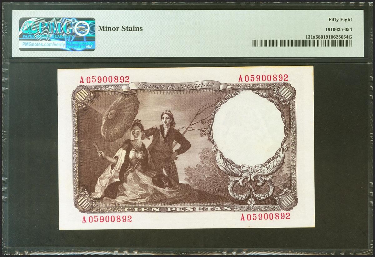 100 Pesetas. 19 de Febrero de 1946. Serie A. (Edifil 2021: 451a, Pick: 131a). EBC++. Encapsulado PMG58.
