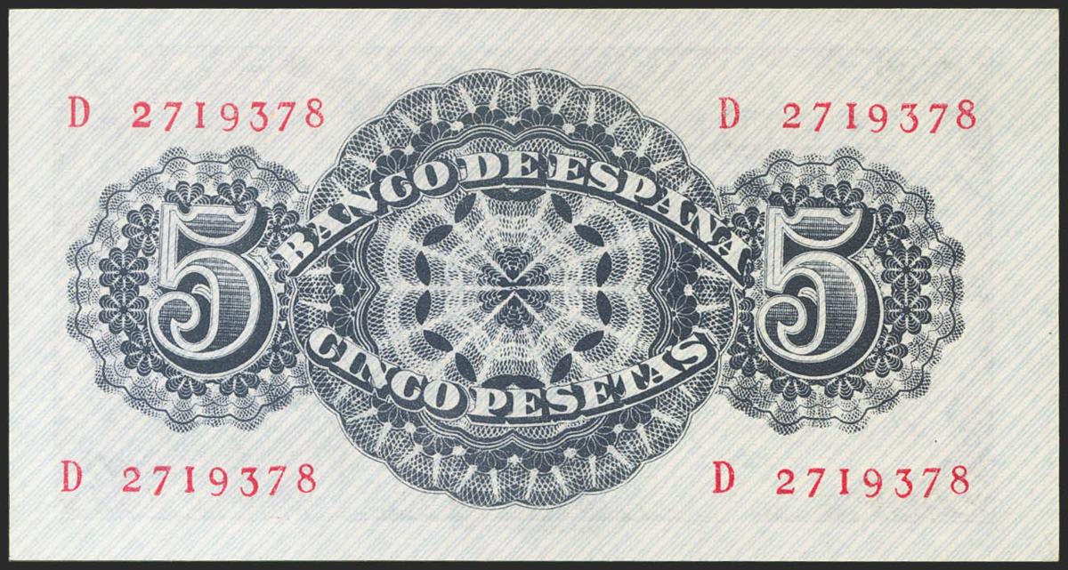 5 Pesetas. 12 de Abril de 1947. Serie D. (Edifil 2021: 454a). Apresto original. SC-.