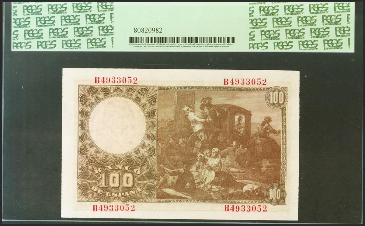 100 Pesetas. 2 de Mayo de 1948. Serie B. (Edifil 2021: 456a, Pick: 137a). EBC+. Encapsulado PCGS55.
