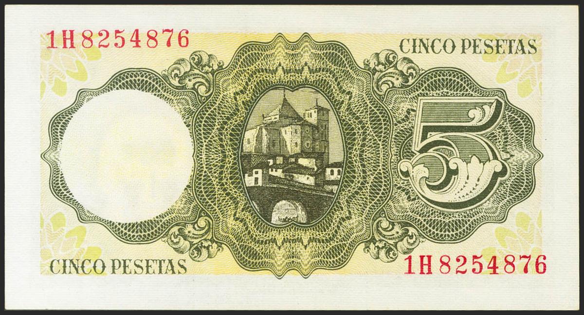 5 Pesetas. 12 de Abril de 1947. Serie 1H. (Edifil 2021: 459a). Apresto original. SC.