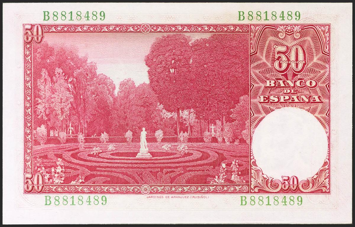 50 Pesetas. 31 de Diciembre de 1951. Serie B. (Edifil 2021: 462a). Apresto original. SC-.