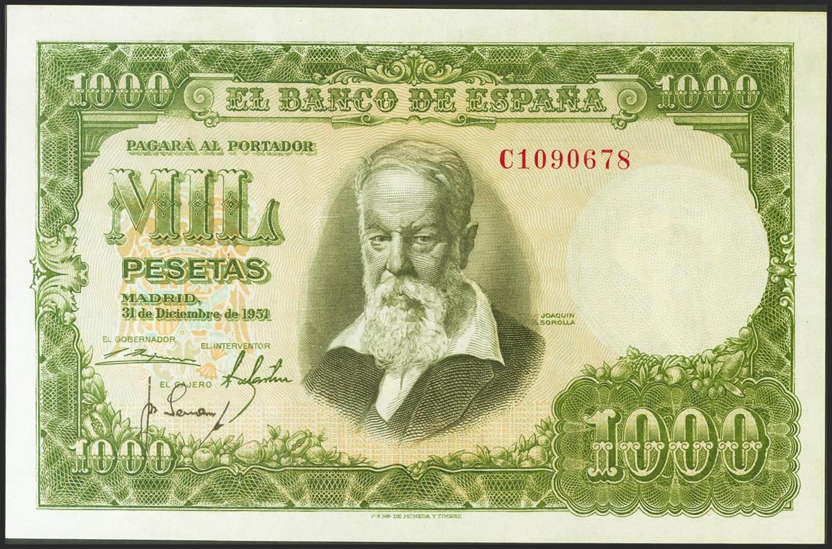1000 Pesetas. 31 de Diciembre de 1951. Serie C. (Edifil 2021: 463a). Conserva todo su apresto original. SC-.