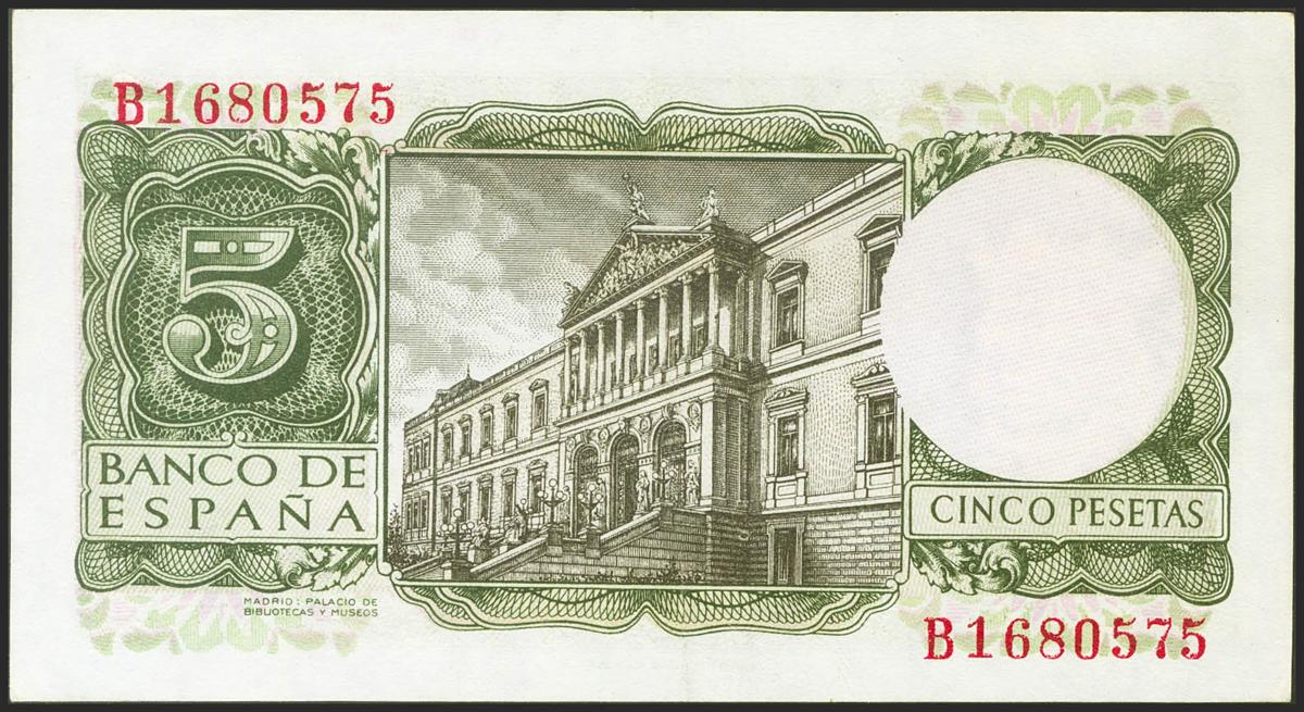 5 Pesetas. 22 de Julio de 1954. Serie B. (Edifil 2021: 466a). Conserva todo su apresto original. EBC+.