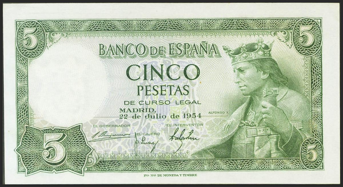 5 Pesetas. 22 de Julio de 1954. Serie L. (Edifil 2021: 466a). Apresto original. SC--.