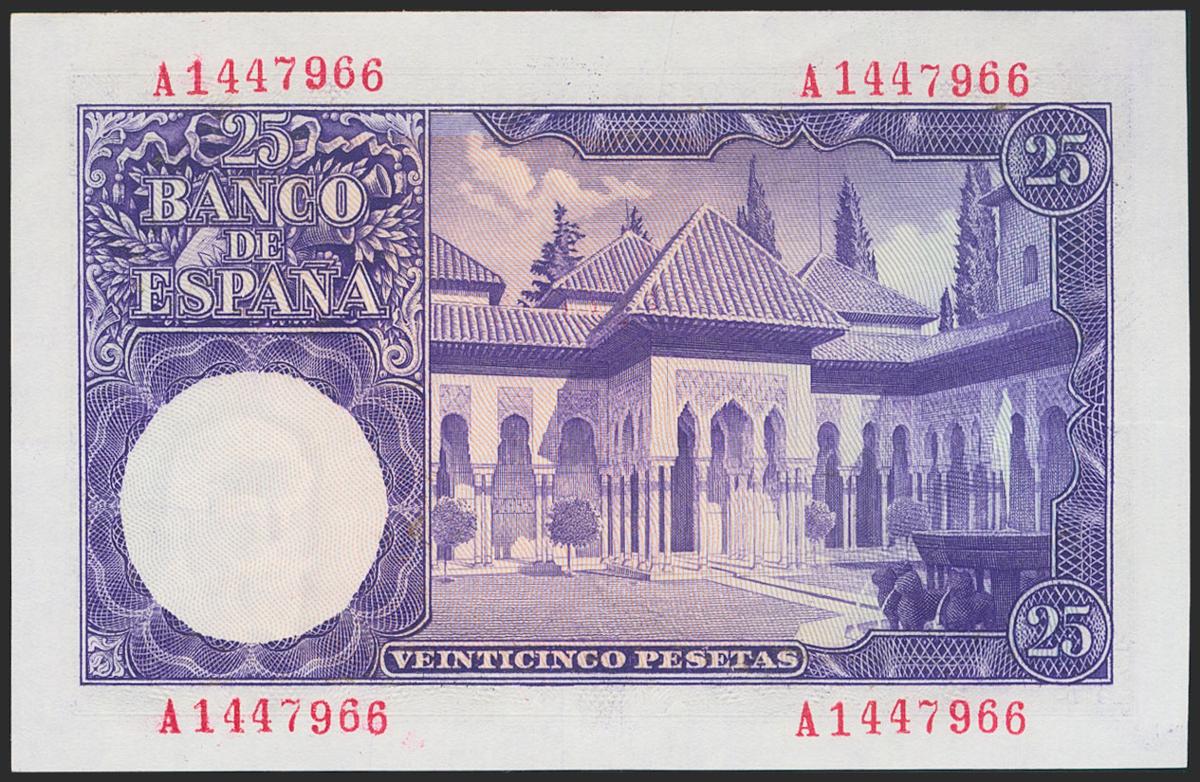 25 Pesetas. 22 de Julio de 1954. Serie A. (Edifil 2021: 467a). Apresto original. SC-.