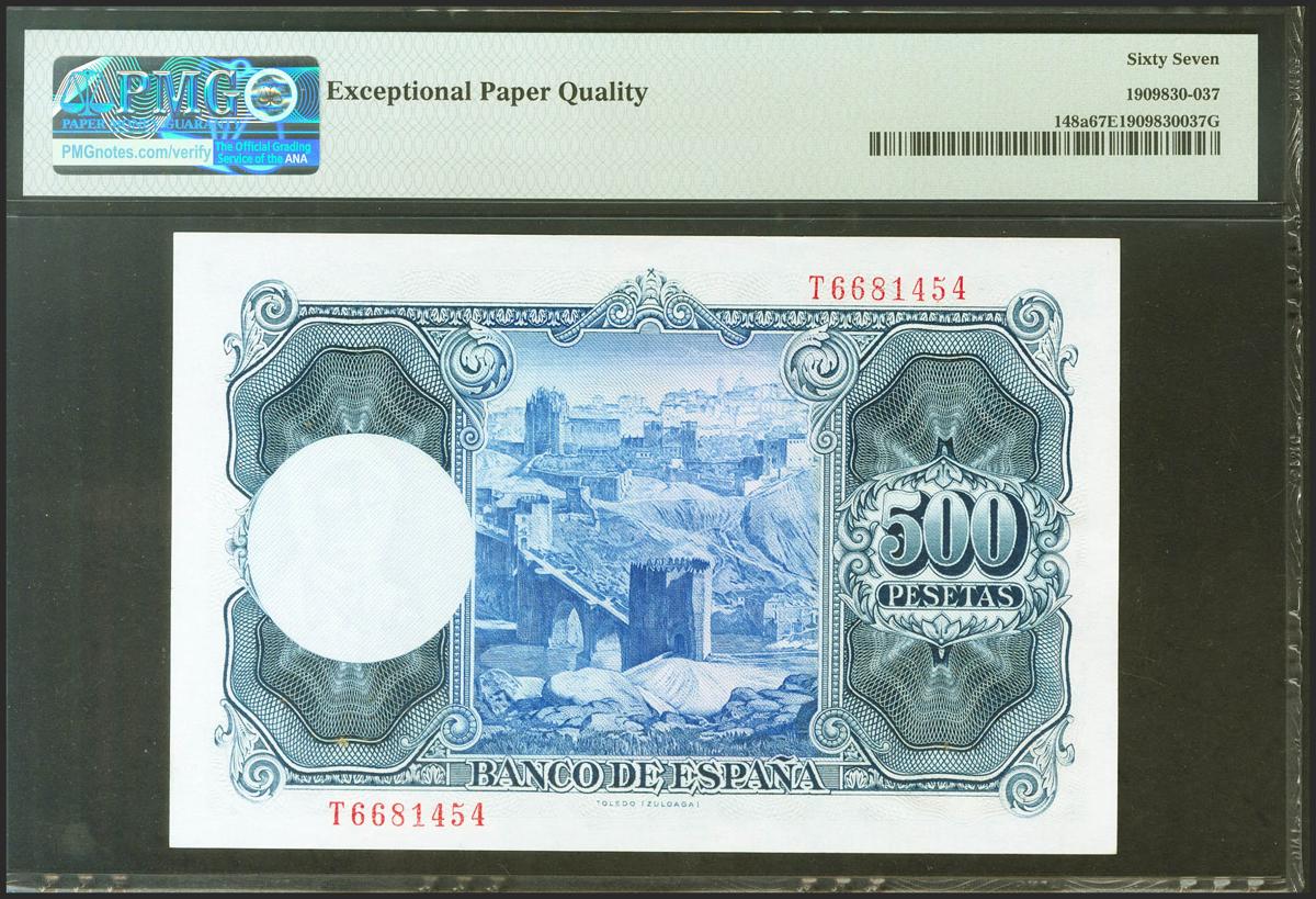 500 Pesetas. 22 de Julio de 1954. Serie T. (Edifil 2021: 468b, Pick: 148a). Apresto original. SC. Encapsulado PMG67EPQ.