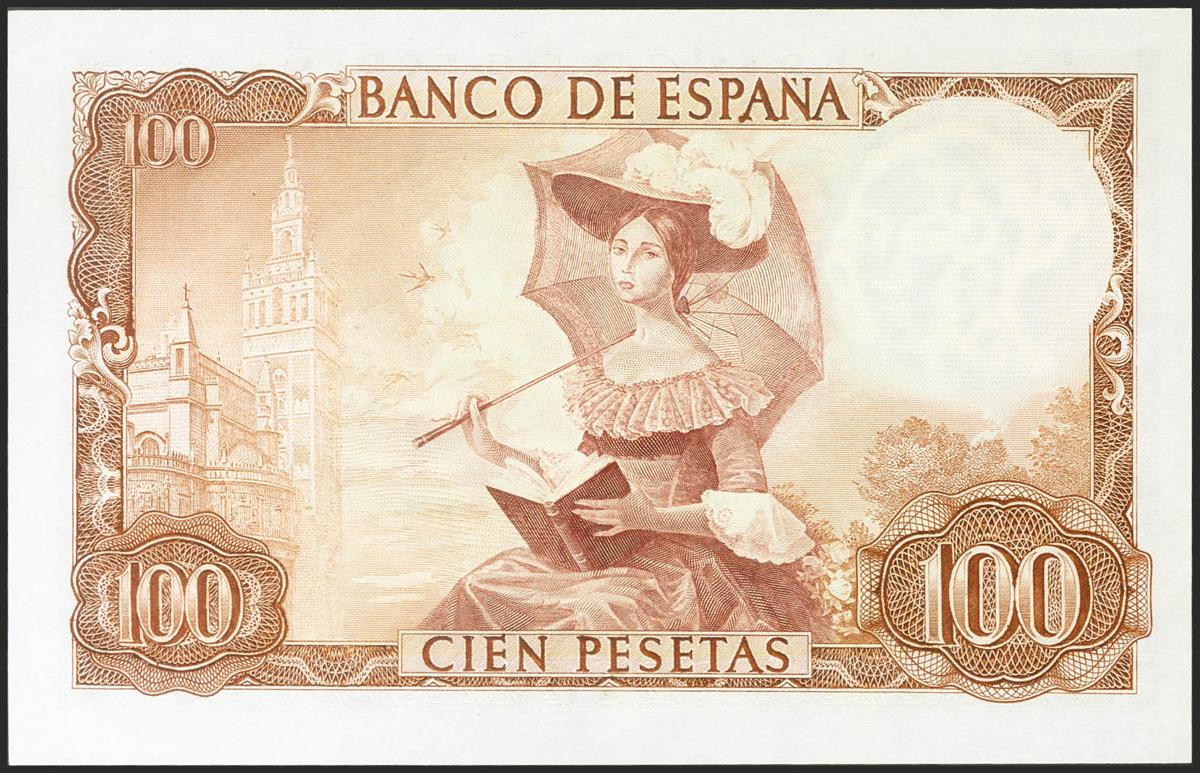 100 Pesetas. 19 de Noviembre de 1965. Firma del cajero desplazada e invertida. Serie U. (Edifil 2021: 470a). Apresto original. SC.