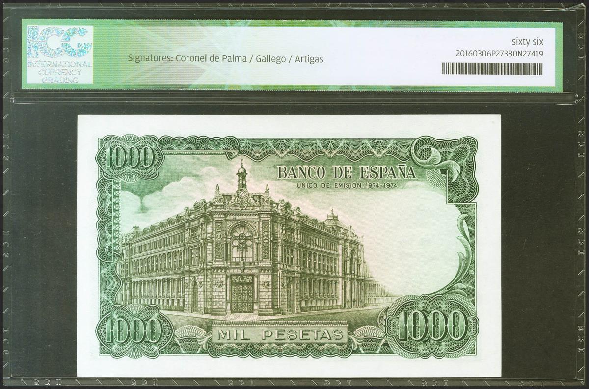 1000 Pesetas. 17 de Septiembre de 1971. Serie especial 9B. (Edifil 2021: 474d, Pick: 154). Inusual en esta excepcional calidad. SC. Encapsulado ICG66.