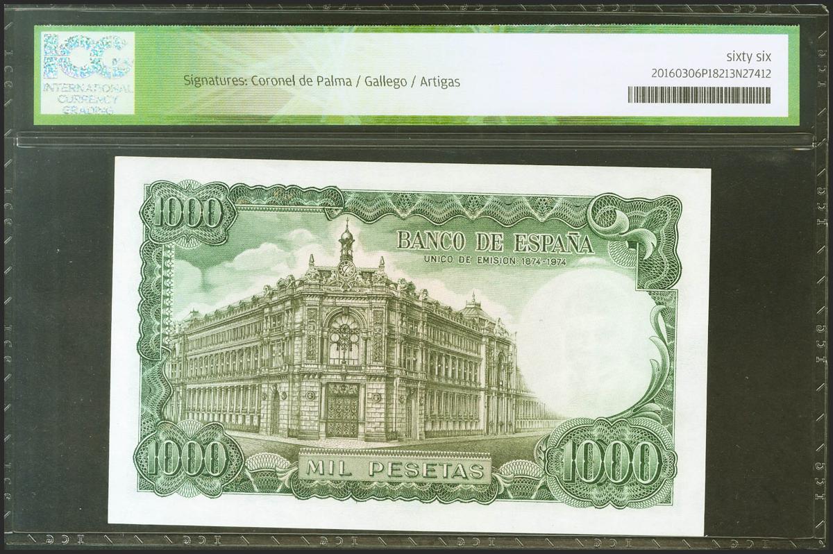 1000 Pesetas. 17 de Septiembre de 1971. Sin serie. (Edifil 2021: 474, Pick: 154). Inusual en esta calidad, apresto original. Encapsulado ICG66.