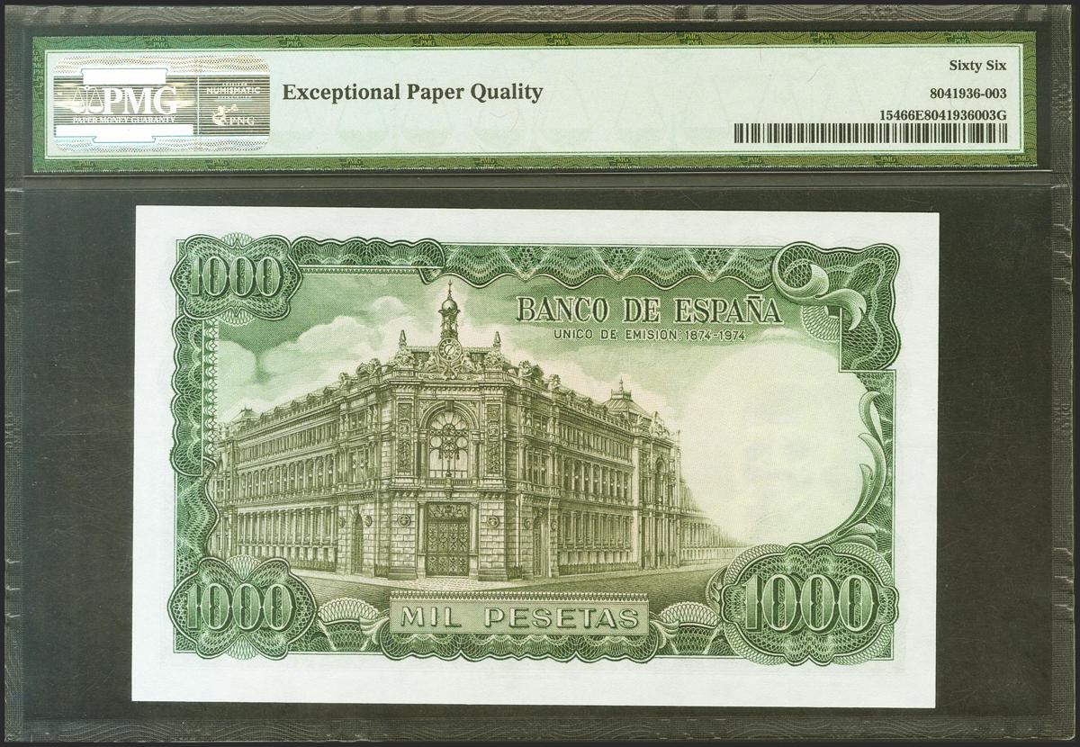 1000 Pesetas. 17 de Septiembre de 1971. Serie 4A. (Edifil 2021: 474c, Pick: 154). Raro en esta espectacular calidad, apresto original. SC. Encapsulado PMG66EPQ.