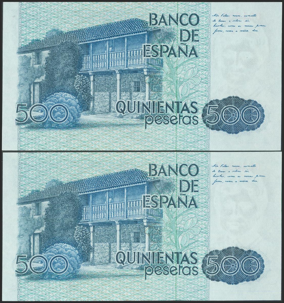 500 Pesetas. 23 de Octubre de 1979. Pareja correlativa. Sin serie y muy baja numeración. (Edifil 2017: 476). SC.