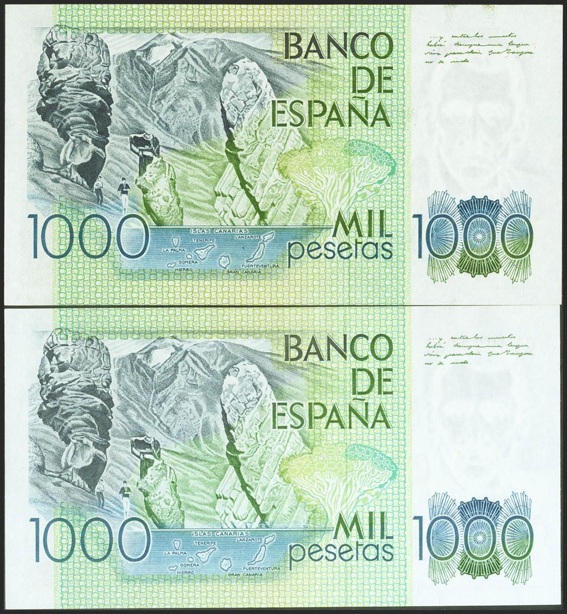Conjunto de 2 billetes de 1000 Pesetas emitidos el 23 de Octubre de 1979, con las series 6Y y 7Y, respectivamente. (Edifil 2021: 477a). EBC.