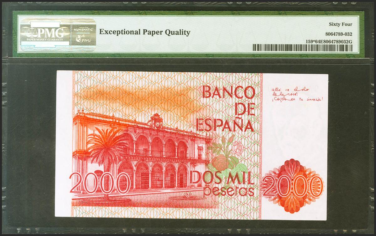 2000 Pesetas. 22 de Julio de 1980. Serie especial 9A. (Edifil 2021: 479b, Pick: 159*). Apresto original. SC. Encapsulado PMG64EPQ.
