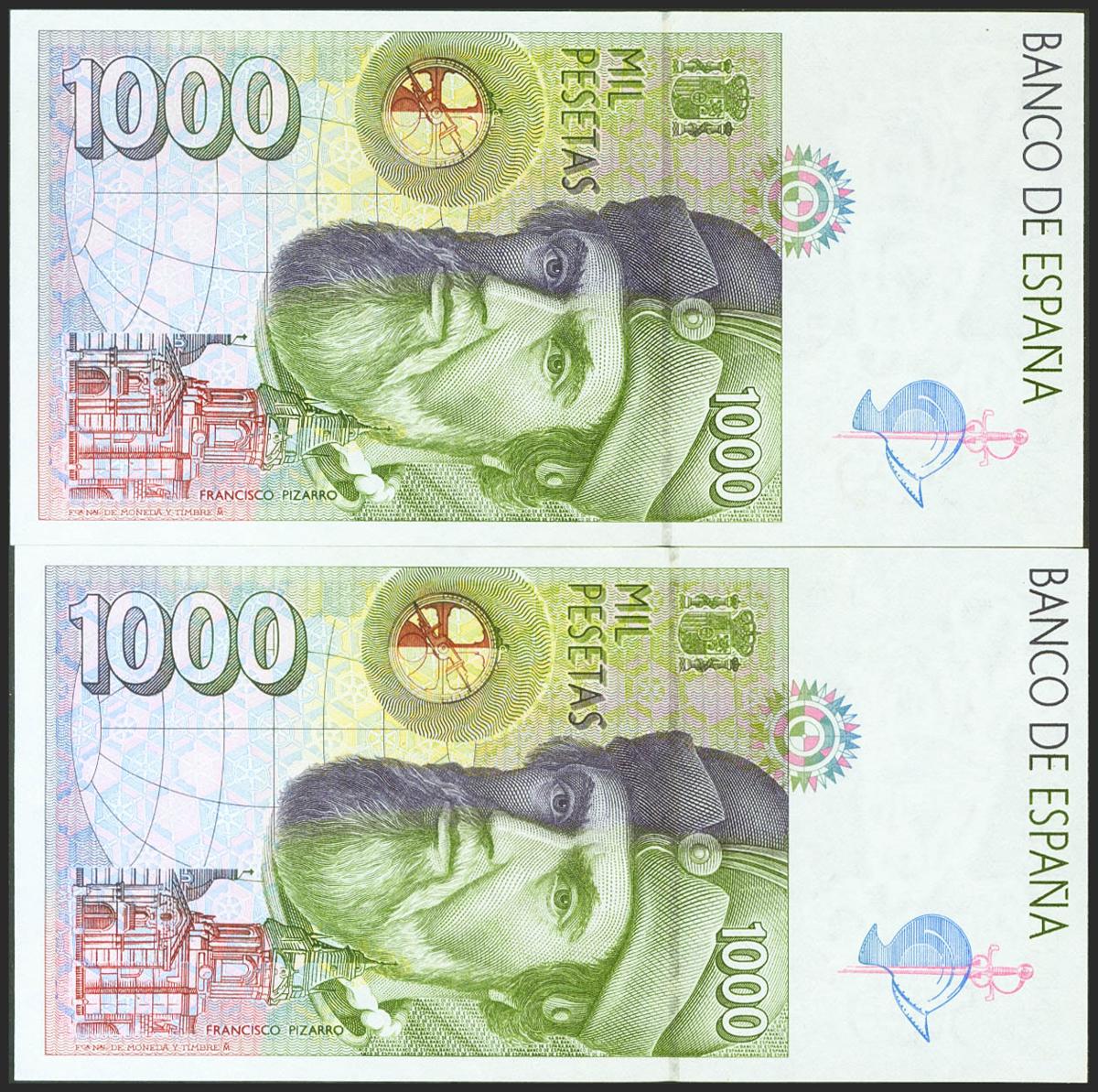 1000 Pesetas. 12 de Octubre de 1992. Pareja correlativa. Sin serie. (Edifil 2021: 483). SC.