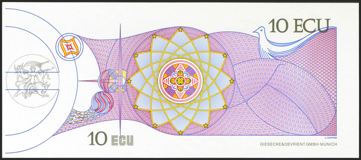 10 Ecu. 1992. SPECIMEN. Billete Promocional de la moneda única Europea, el Ecu, expuesta en el pabellón de la Comunidad Europea con motivo de la Exposición Universal de Sevilla. Muy raro. SC-.