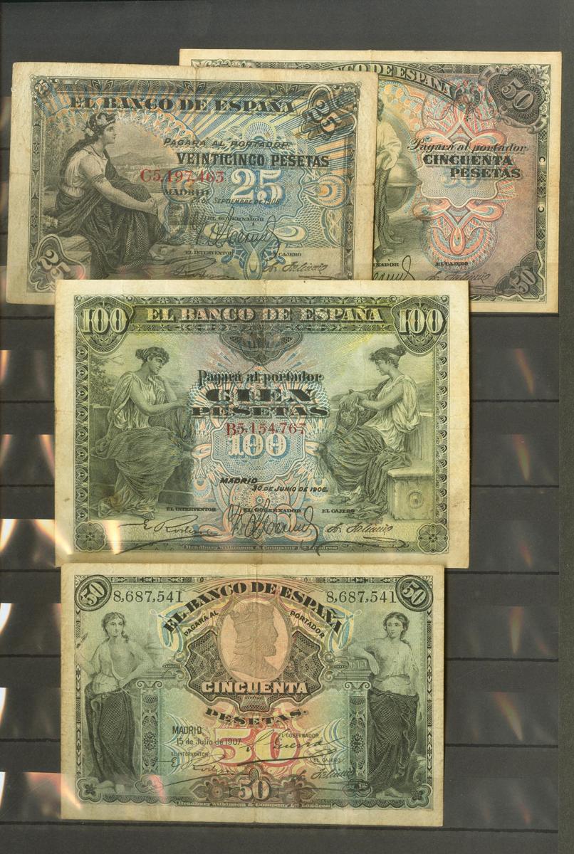 Precioso e interesantísimo conjunto-colección de billetes del Banco Español desde 1906 hasta 1992 con la casi totalidad de billetes y series emitidos en este periodo. IMPRESCINDIBLE EXAMINAR.