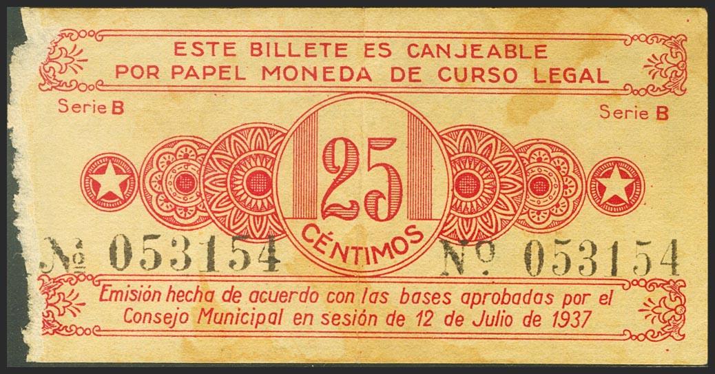 ALCOY (ALICANTE). 25 Céntimos. 12 de Julio de 1937. (González: 378). RC+.