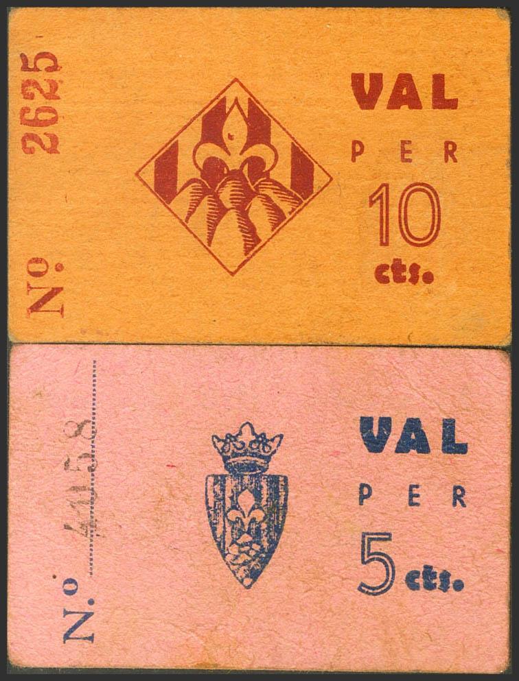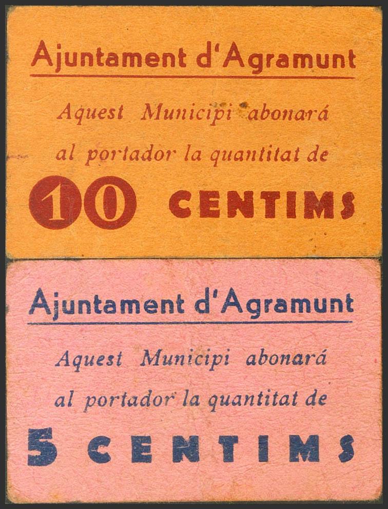 AGRAMUNT (LERIDA). 5 Céntimos y 10 Céntimos. (1937ca). (González: 6016, 6019). Raros. EBC/MBC.