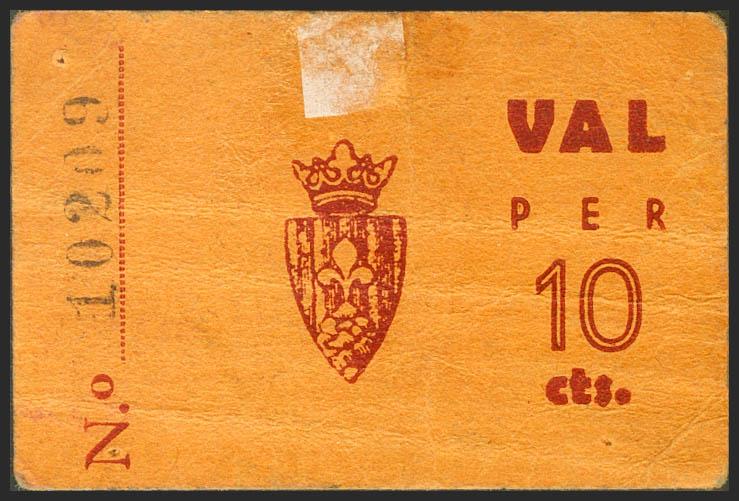 AGRAMUNT (LERIDA). 10 Céntimos. (1937ca). (González: 6017). Raro. MBC.