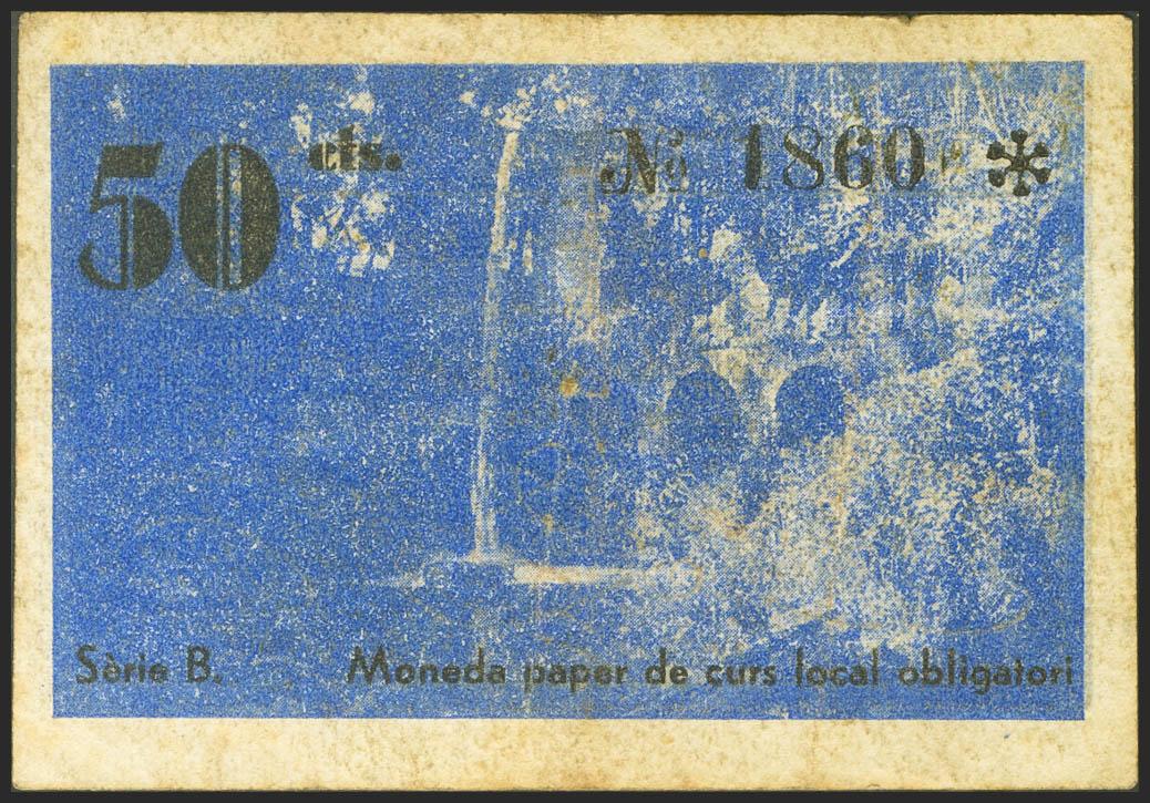 BEGUDA (GERONA). 50 Céntimos. 15 de Julio de 1937. Serie B. (González: 6926). MBC.