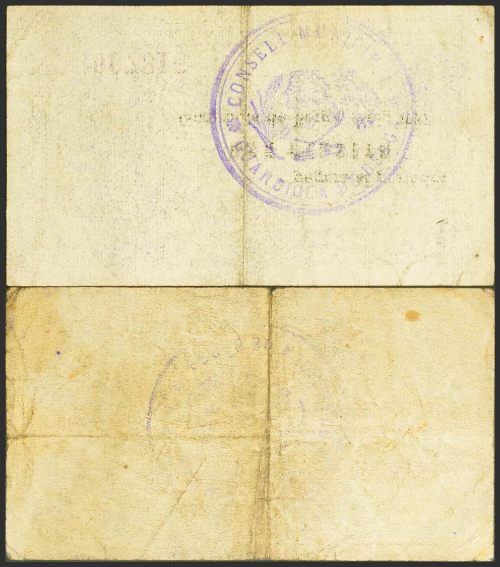GUARDIOLA DE BERGA (BARCELONA). 1 Peseta y 2 Pesetas. Mayo 1937. (González: 8146/47). Muy rara serie completa. MBC-/MBC+.