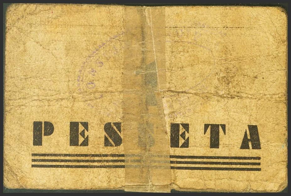 LES (LERIDA). 1 Peseta. (1937ca). (González: 8307). Raro, fortalecido con cinta adhesiva. RC.