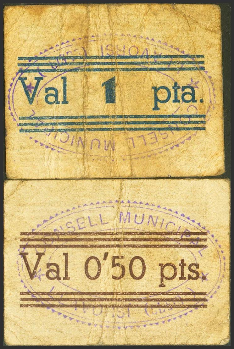 LLAVORSI (LERIDA). 50 Céntimos y 1 Peseta. (1937ca). (González: 8356/57). Rara serie completa. MBC.