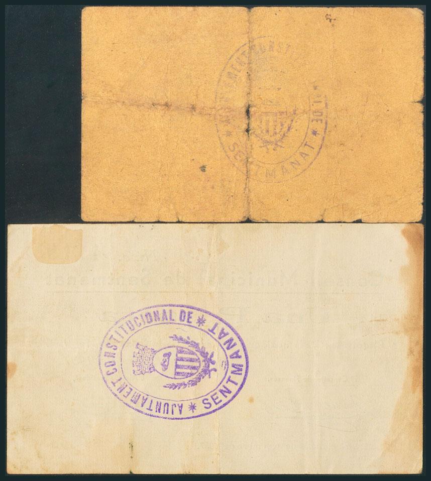 SENTMENAT (BARCELONA). 50 Céntimos y 1 Peseta. Abril 1937. (González: 9949/50). Raros. BC/MBC.