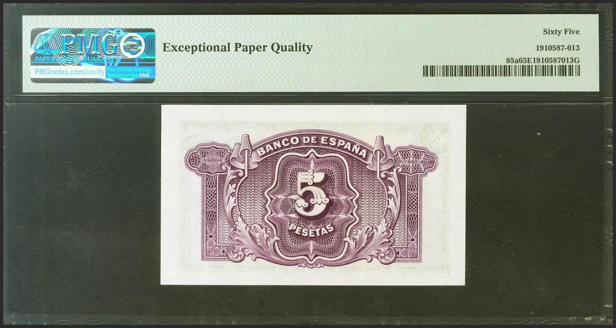 5 Pesetas. 1935. Certificado de Plata. Sin serie. (Edifil 2017: 363, Pick: 85a). Apresto original. Encapsulado PMG65EPQ.