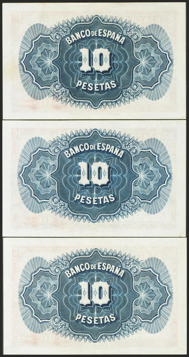 Conjunto de 3 billetes de 10 Pesetas Certificado de Plata emitidos en 1935 todos ellos sin serie (Edifil 2021: 364), conservando su apresto original. SC/SC-.
