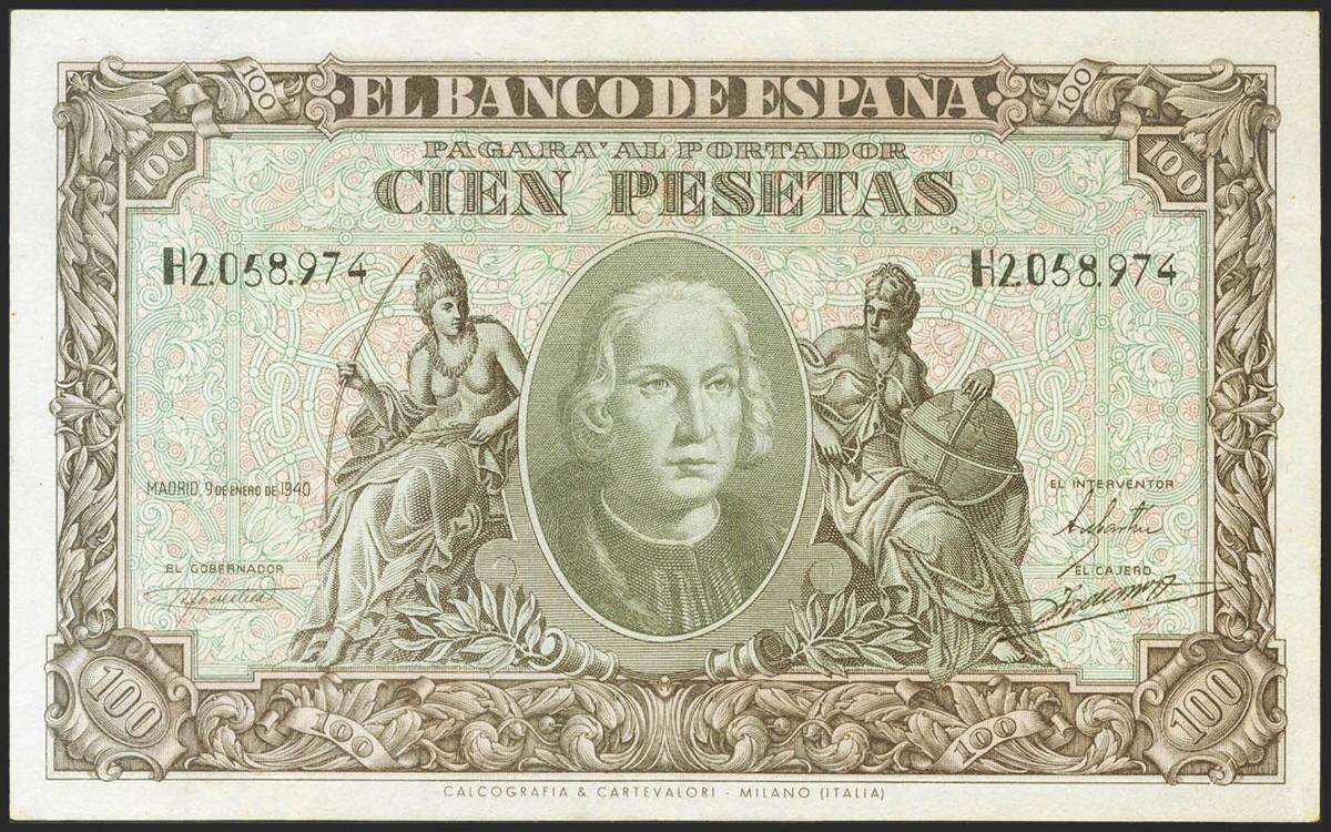 100 Pesetas. 9 de Enero de 1940. Serie H. (Edifil 2021: 438a). Conserva parte de su apresto orignal. EBC+.