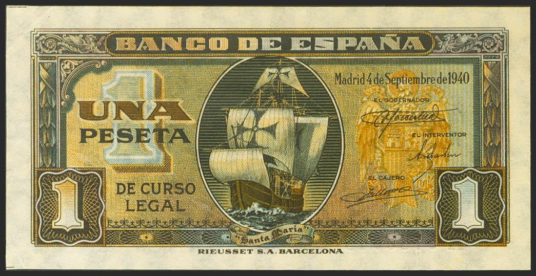 1 Peseta. 4 de Septiembre de 1940. Serie A. (Edifil 2021: 442a). Conserva todo su apresto original. SC-.