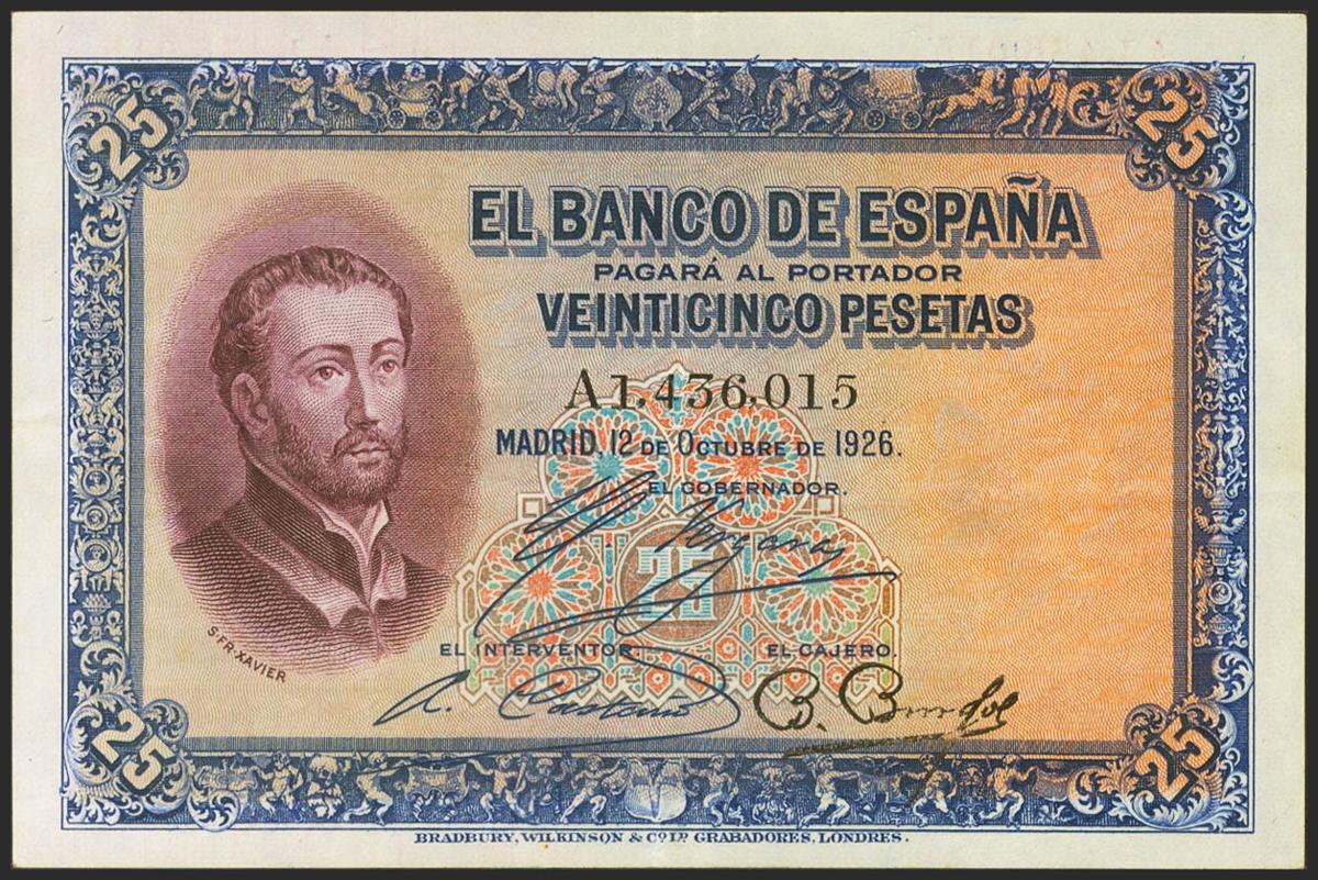 25 Pesetas. 12 de Octubre de 1926. Serie A. (Edifil 2021: 325a). Conserva gran parte su apresto original. EBC-.