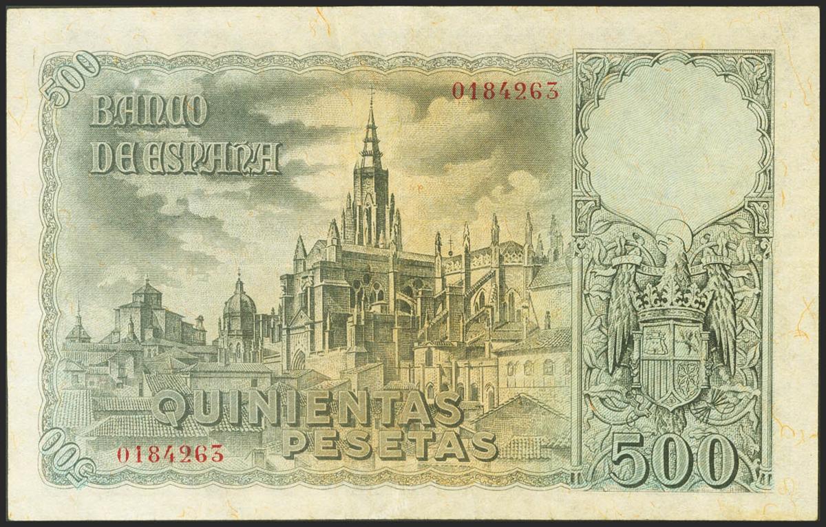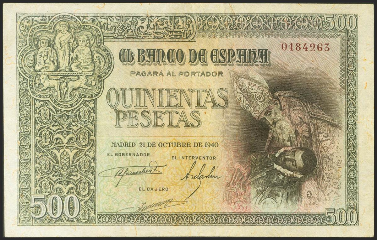 500 Pesetas. 21 de Octubre de 1940. Sin serie. (Edifil 2021: 444, Pick: 124a). MBC+.