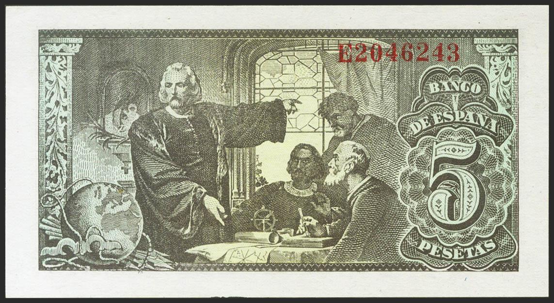 5 Pesetas. 13 de Febrero de 1943. Serie E. (Edifil 2021: 446a). Apresto original. SC.