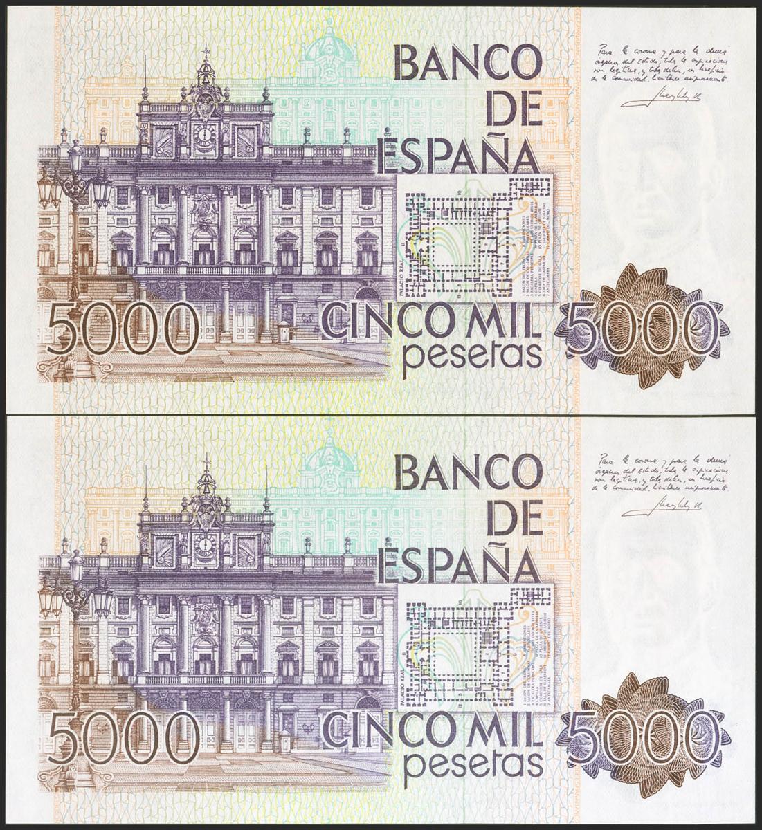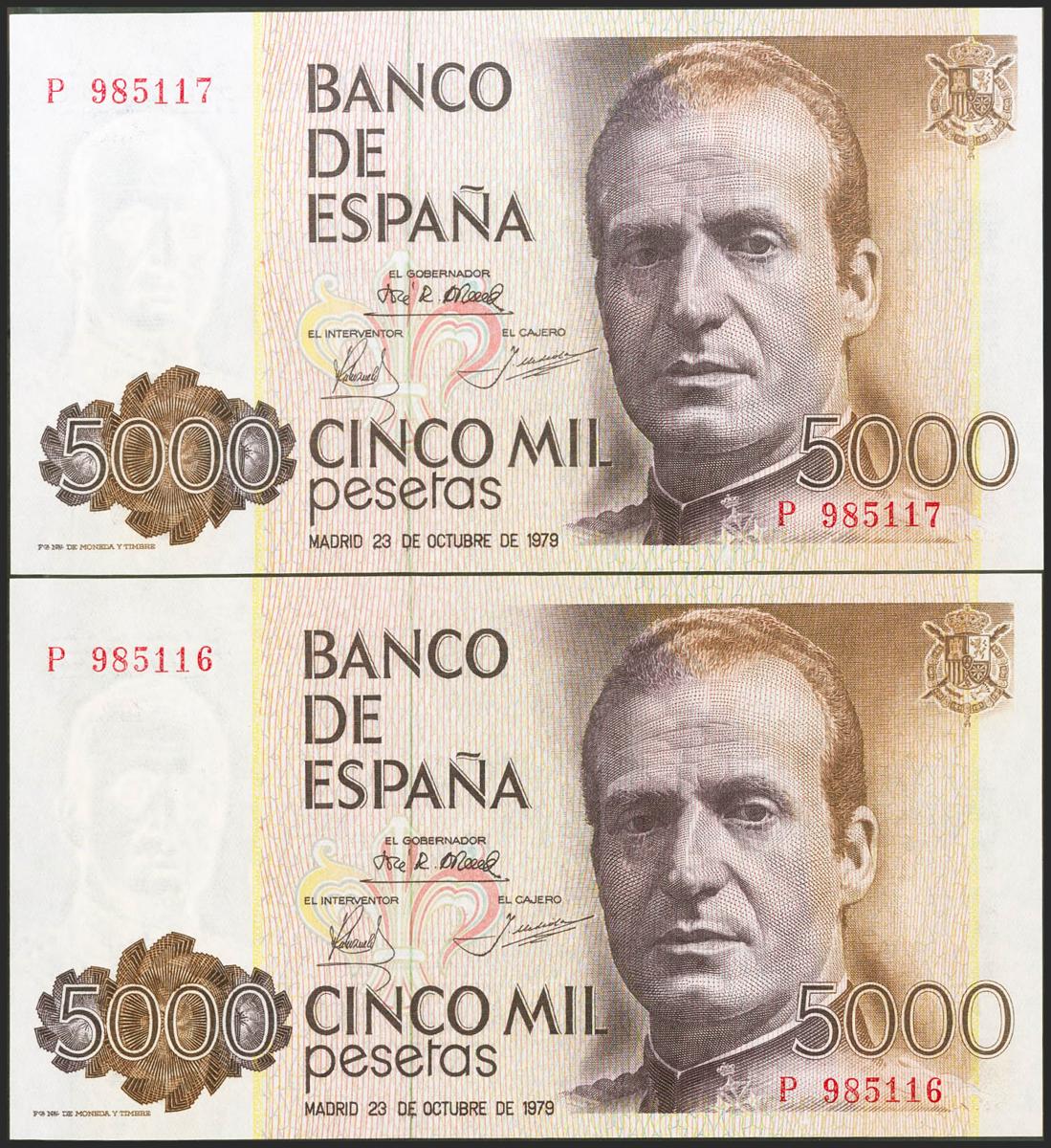5000 Pesetas. 23 de Octubre de 1979. Pareja correlativa. Serie P. (Edifil 2017: 478a). SC.