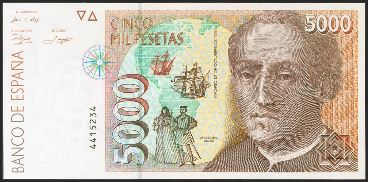 5000 Pesetas. 12 de Octubre de 1992. Sin serie. (Edifil 2021: 484). SC.