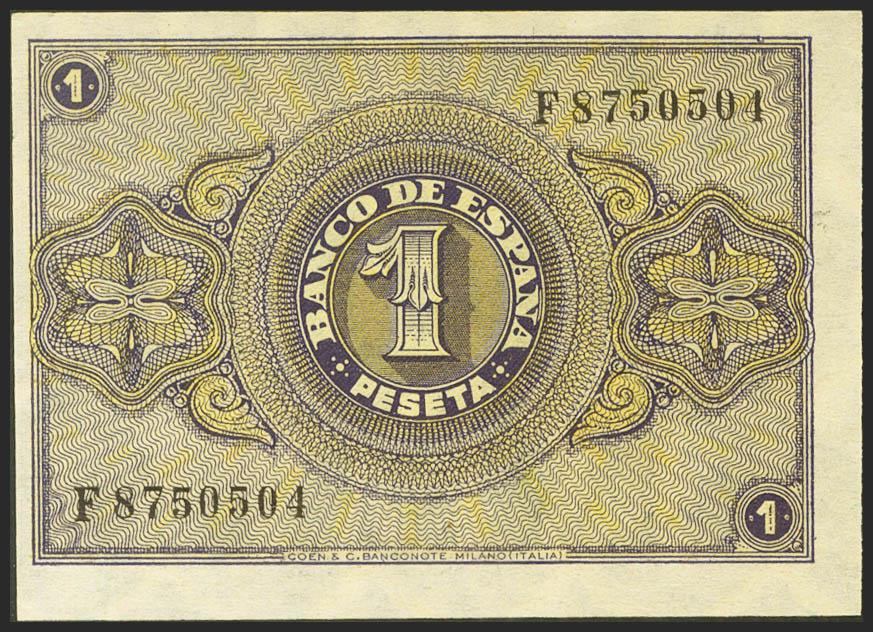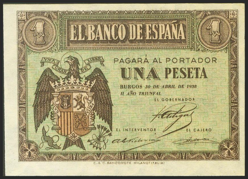1 Peseta. 30 de Abril de 1938. Serie F. (Edifil 2021: 428a). Apresto original. SC-.