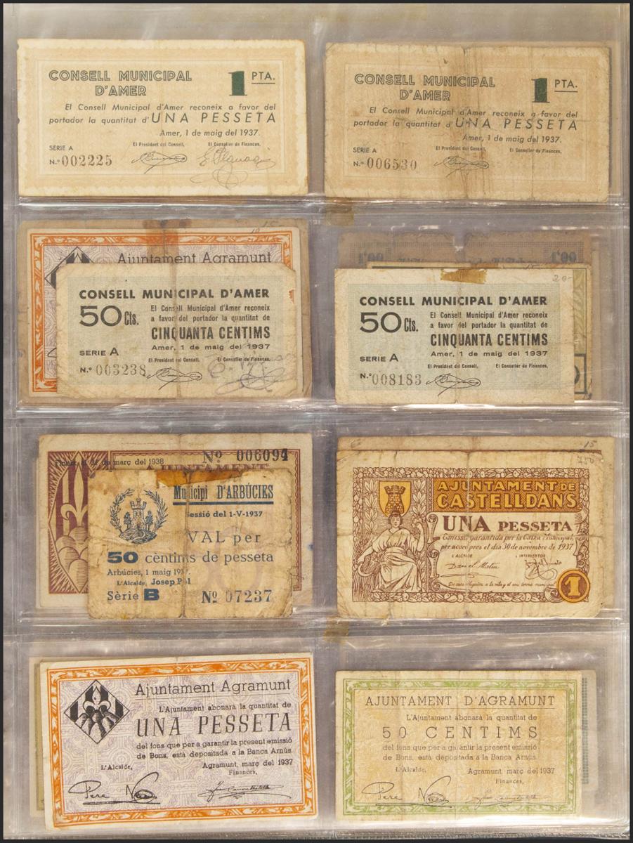 Interesantísimo conjunto de más de 200 billetes de la Guerra Civil mayoritariamente catalanes, algún vale, en diferentes calidades, algunos de ellos se tratan de reproducciones posteriores. IMPRESCINDIBLE EXAMINAR.